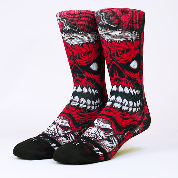 Step into the rebellious spirit of the 1980s skateboard culture with our 'Demon Days' socks, featuring vibrant and edgy designs inspired by retro skateboard artwork.