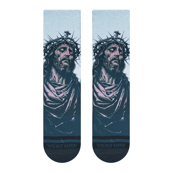 Step into a pair that’s divine! Featuring a bold Jesus design, these socks promise to elevate your sock game to heavenly heights.