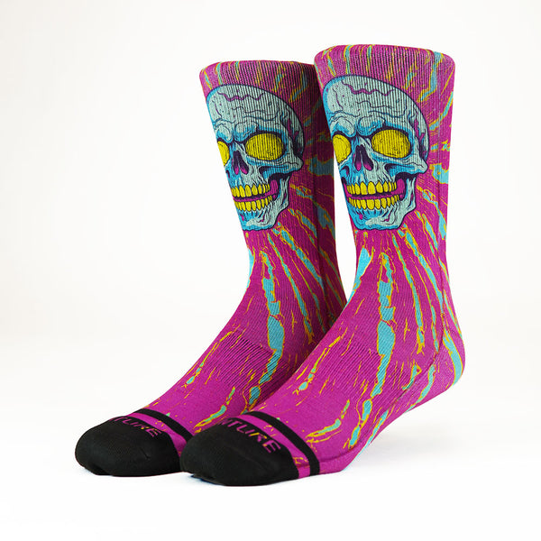 Immerse yourself in a psychedelic realm with our 'Ripper' socks, where vibrant colors and intricate skull designs unleash an untamed spirit of rebellion and individuality.