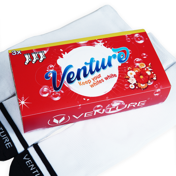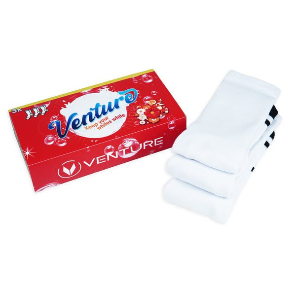 Introducing our "Signature 3 Pack" — where iconic style meets unrivaled comfort. These pristine white socks feature a cloud-soft terry sole for supreme cushioning and are expertly crafted with moisture-wicking technology, ensuring sweat-free comfort all day long. Step into the Venture experience, where every step feels like a signature moment