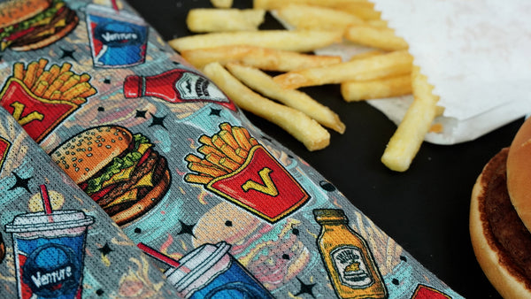 Introducing our 'Happy Meal' Socks, where fast food meets fun fashion. Step into a world of burgers, fries, and a fizzy drink right on your feet, making every day feel like a tasty adventure.