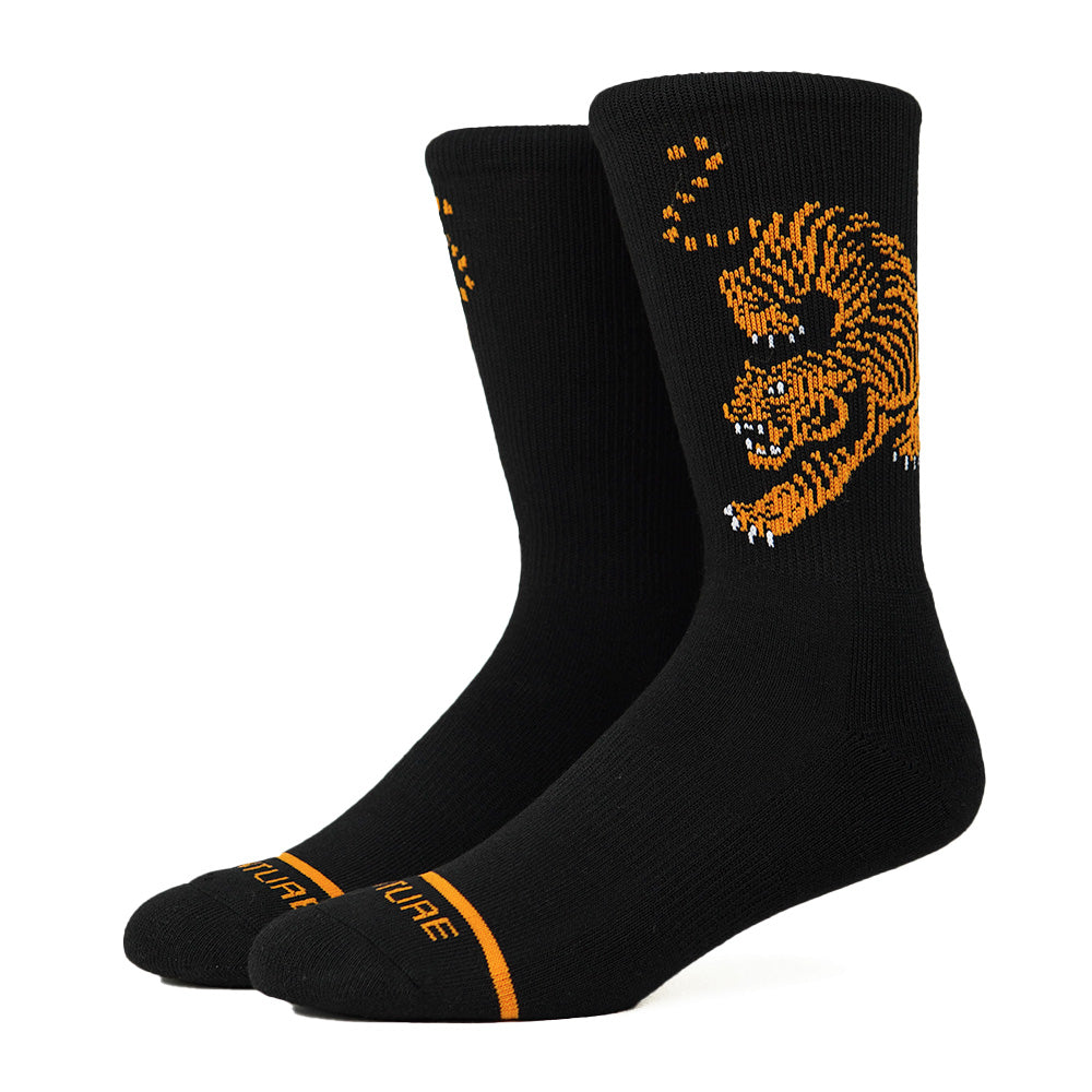 Unleash your inner beast with Tiger Time. Inspired by classic tattoo art and untamed energy, these socks bring fierce detail to every step. The bold orange tiger design stands out against a deep black base, a nod to power, precision, and persistence.